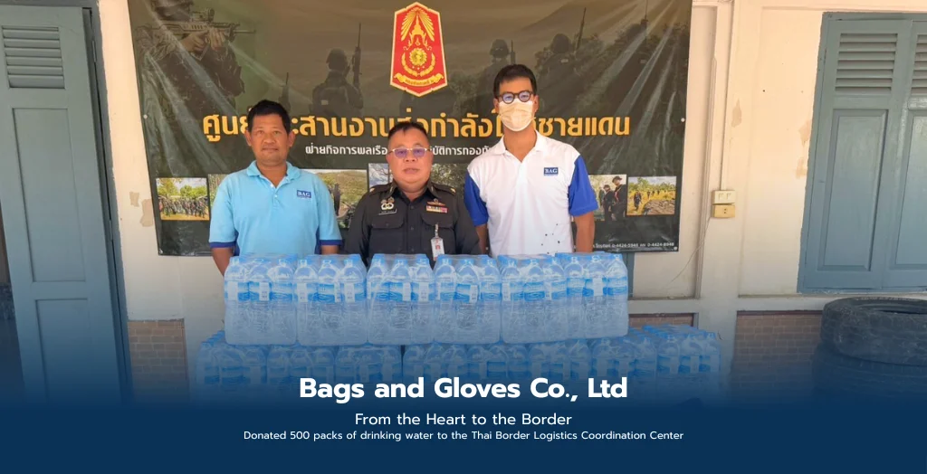 On July 29, 2025, Bags and Gloves Co., Ltd. delivered 400 kilograms of black garbage bags to the Nakhon Ratchasima Provincial Public Health Office in support of evacuation centers along the Thai–Cambodian border.