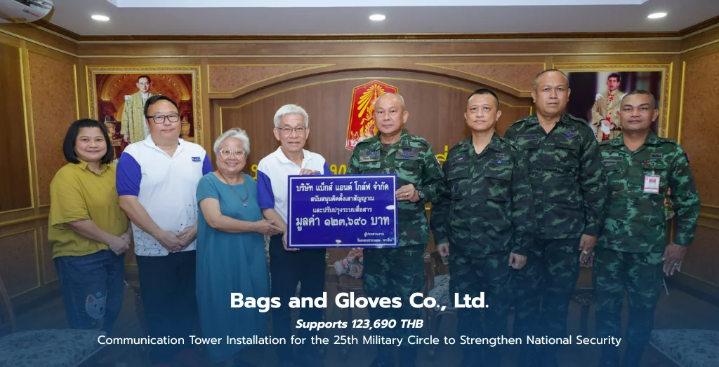 Bags and Gloves Co., Ltd., a leading manufacturer and exporter of high-quality plastic bags and plastic gloves, has contributed a new communication signal tower to the 25th Military Circle (Fort Weerawatyothin) in Surin Province. The initiative aims to enhance communication efficiency and strengthen the operational capability of Thailand’s national security forces.