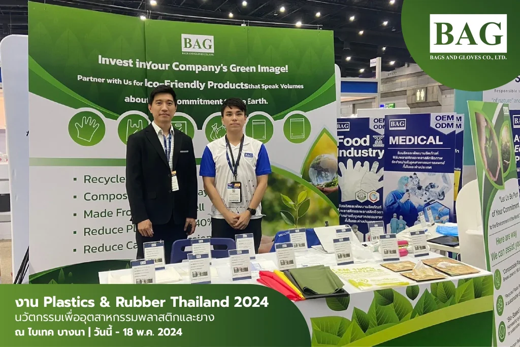 บริษัท แบ็กส์ แอนด์ โกล์ฟ จำกัด (Bags and Gloves Co., Ltd.) เข้าร่วมแสดงสินค้าในงาน Plastics & Rubber Thailand 2024 ซึ่งจัดขึ้นระหว่างวันที่ 15 – 18 พฤษภาคม 2567 ณ ฮอลล์ 100 ศูนย์นิทรรศการและการประชุมไบเทค บางนา