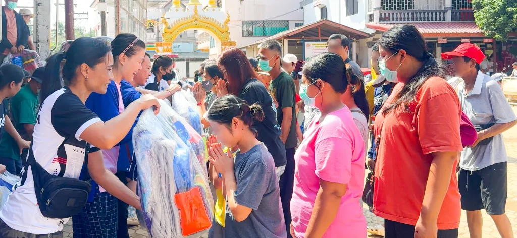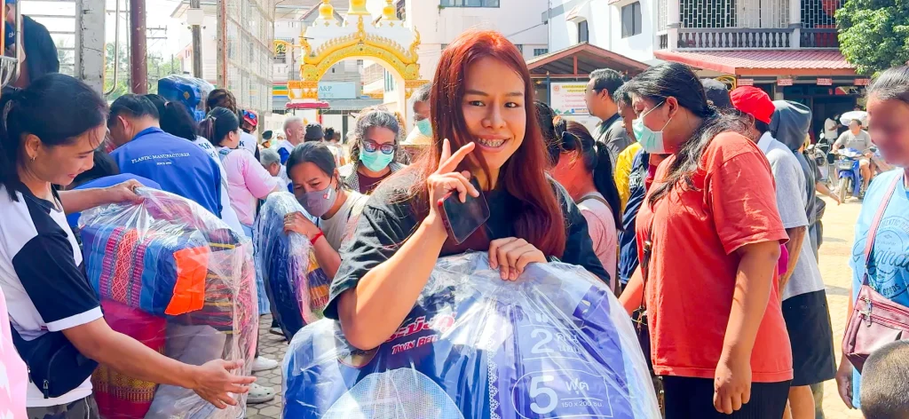 ธารน้ำใจ มอบความห่วงใย สู้ภัยน้ำท่วม (กรุงเทพ-แม่สาย) ร่วมบริจาคชุดเครื่องนอนจำนวน 490 ชุด ให้กับผู้ประสบภัยน้ำท่วม ณ จุดรับบริจาค วัดผาสุการาม (วัดไม้ลุงขน) อ.แม่สาย จ.เชียงราย วันพุธ ที่ 23 ตุลาคม พ.ศ. 2567 ทางบริษัท Bags and Gloves Co., Ltd. และบริษัท ที แอนด์ เอ กรุ๊ป (ประเทศไทย) ร่วมบริจาคชุดเครื่องนอนจำนวน 490 ชุด มอบให้กับผู้ประสบภัยน้ำท่วม ณ จุดรับบริจาค วัดผาสุการาม (วัดไม้ลุงขน)อ.แม่สาย จ.เชียงราย เพื่อเป็นกำลังใจให้กับผู้ประสบภัย และยังมีบริษัท United Marine Logistic Co., Ltd. (UMAC) ช่วยสนับสนุนรถบรรทุก 6 ล้อ จำนวน 1 คัน ในการขนของไปบริจาคในครั้งนี้